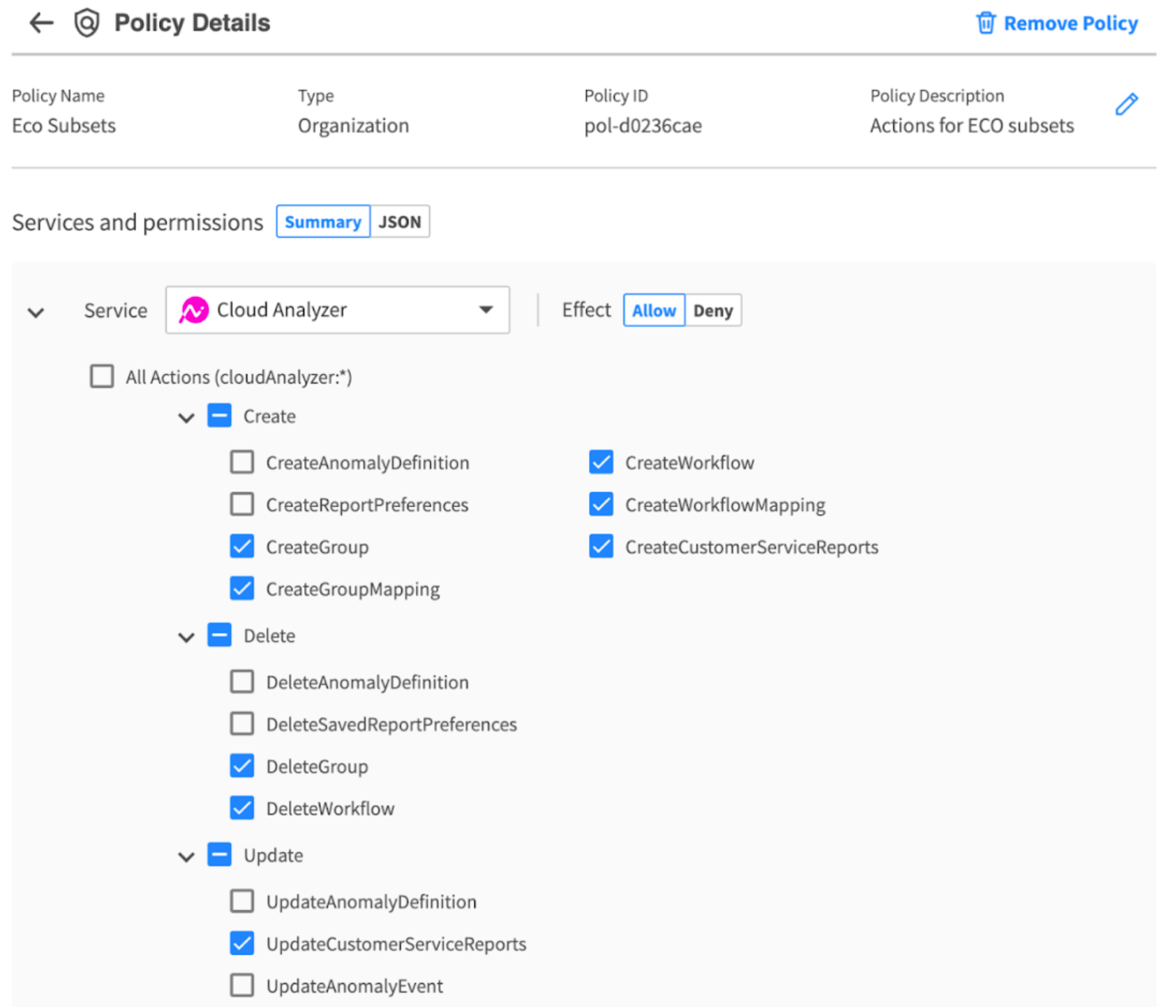 Create a policy using the actions shown below.
